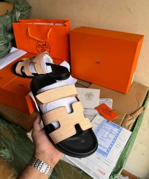 Hermes Sandal Cream Black 208 TOP BATCH UA